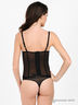 Оригинальный корсет - пуш-ап с плотными чашечками на косточках со съемным уплотнителем. Тонкие эластичные бретели регулируются по длине. Застежка на крючки на две позиции. Декорирован кружевом и атласными лентами.