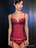 Корсет с формованными поролоновыми чашками на косточках. Выполнен из тонкой эластичной ткани с сетчатыми вставками. Эластичные бретели регулируются по длине. Декорирован оригинальным принтом. Дополнен съемными пажами для чулок.