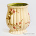 Рифленые формы керамических изделий этой коллекции украшены выпуклыми изображениями роз, прорисованныыми приятными тонами приглушенных красных и зеленых цветов на мягком сливочном фоне. Такое изображение роз имитирует вышивку ручной работы.