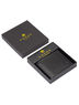 Кошелёк включает в себя: два отделения для банкнот, одно отделение для монет на кнопке, четыре отделения для кредитных карт, два универсальных скрытых кармана.