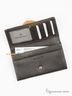 Кошелек закрывается на кнопку, внутри отделения под купюры, отделение под монеты на молнии, отделения под кредитные карты, с оборотной стороны кошелька отделение на молнии. Размер: 18х2,5х10 см.