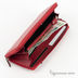 Внутри: три отдела для купюр, двенадцать кармашков для пластиковых карт, отделение для мелочи на молнии. На задней стенке карман на молнии.