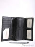 Кошелёк из натуральной кожи. Внутри 5 отделений, из которых два на молнии.Имеется отделение для визитных карточек на кнопке. На задней стенке два кармана, один из которых на молнии. Закрывается на кнопку. Размер: 19*1,5*10 см.