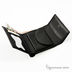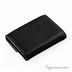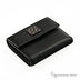 Женский кошелёк Eleganzza черного цвета из натуральной кожи. Модель закрывается клапаном с кнопкой. Отделение для мелочи находится внутри, имеет 2 отделения и закрывается на клапан с кнопкой. В кошельке есть 2 складывающихся отделения для крупных купюр и 3 отделения для кредитных и дисконтных карт.
