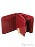 Кошелек небольшого размера, состоит из двух отделений. Первое с двумя отделениями для купюр и 8 кармашками для визиток закрывается на хлястик с кнопкой, второе - для мелочи закрывается на молнию.