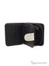Кошелек женский среднего размера. Состоит из двух отделений. В первом, закрывающимся на кнопку, имеется два отделения для купюр и 8 кармашков для кредитных карт. Второе отделение для мелочи закрывается на молнию.