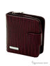 Кошелек женский среднего размера. Состоит из двух отделений. В первом, закрывающимся на кнопку, имеется два отделения для купюр и 8 кармашком для кредитных карт. Второе отделение для мелочи закрывается на молнию.