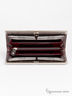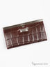 Женский кошелек закрывается на металлический замочек, внтури отделения под купюры, отделение для монет на молнии, отделения для кредитных карт. 19х2х10