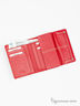 Женский кошелек закрывается на кнопку с отделениями под купюры, отделение под монеты на молнии с внешней стороны, внутри отделения под кредитные карты. Размер: 14х2,5х10 см.