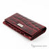 Элегантный кошелек из рельефной кожи с выделкой под кожу рептилии. Застежка клапан на клепке. С внешней стороны за молнией - отделение для мелочи. Маленькие отделы для визиток или кредитных карт и основной отдел для купюр. Внешняя часть декорирована металлической вставкой в виде логотипа бренда.