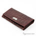 Элегантный кошелек из рельефной кожи с выделкой под кожу рептилии. Застежка клапан на клепке. С внешней стороны за молнией - отделение для мелочи. Маленькие отделы для визиток или кредитных карт и основной отдел для купюр. Внешняя часть декорирована металлической вставкой в виде логотипа бренда.