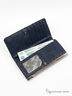 Изящный женский кошелек выполнен из экокожи. Застегивается на кнопку. Внутри расположены отделения для купюр и кармашки для карточек. Изделие декорировано прострочкой.