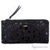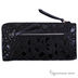 Застежка на молнию. Внутри отделения для карточек либо визиток и отделения для купюр. Сзади - карман на молнии.