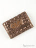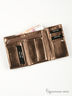 Кошелек закрывается на кнопку. Внутри два отдела под купюры, восемь отделений под визитки, карман на кнопке для мелочи. Размер: 15х3,5х10 см.