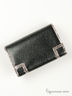 Кошелек закрывается на кнопку. Внутри два отдела под купюры, восемь отделений под визитки, карман на кнопке для мелочи. Размер: 15х3,5х10 см.