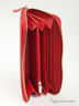 Кошелек закрывается на кнопку.Имеет три отделения,отделение для мелочи с рамочным замком,карман на молнии и отделения для визиток и карточек. Дополнительный карман на задней стенке.