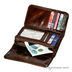 Стильный кошелек из жаккарда с отделкой из искуственной кожи. Отдел для бумажных купюр, кармашек для мелочи и многочисленные отделения для кредитных карт и визиток.