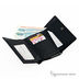 Женский кошелёк Eleganzza синего цвета. Модель закрывается клапаном с кнопкой. Отделение для мелочи находится снаружи, имеет 1 отделение и закрывается на кнопку. В кошельке есть 2 складывающихся отделения для крупных купюр и 8 отделений для кредитных и дисконтных карт.
