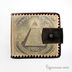 Кошелек из натуральной кожи, среднего размера, закрывается на кнопку. Рисунок - печать по коже. Кошелёк имеет два основных отделения для купюр. Есть кармашки для дисконтных карт, визиток, кредиток, пропуска, проездного документа.