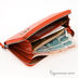 Женский кошелёк Eleganzza оранжевого цвета. Модель закрывается на молнию. Отделение для мелочи находится внутри, имеет 1 отделение и закрывается на молнию. В кошельке есть 4 не складывающихся отделения для крупных купюр и 8 отделений для кредитных и дисконтных карт.