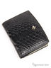 Внутри кошелька два отделения для купюр, одно отделение с контуром, отделения для 8 визиток, застегивается на кнопку. Отделение для мелочи застегивается на металлический замок. 12х3х10 см.