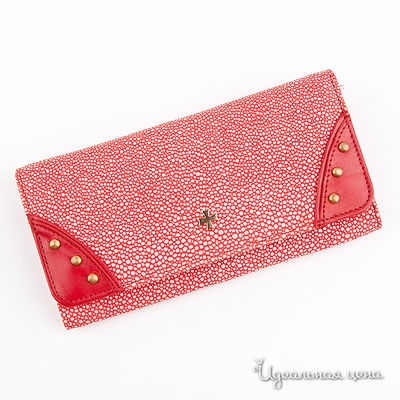 Оригинальный и изящный кошелек из 100% фактурной кожи. Передняя сторона изделия декорирована металлическими клепками и вставкой в виде логотипа бренда. Застежка клапан на плотной клепке. Внутри 6 отделений для визиток, отделении для водительских прав, карман на молнии. Три отделения для купюр и отдел для мелочи на молнии. Задняя сторона изделия так же дополнена карманом на молнии.