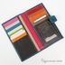 Изделие выполнено из натуральной кожи. Основное отделение застегивается на хлястик с кнопкой. Внутри 18 отделений для карточек, два прозрачных кармана, 5 скрытых отделений для купюр. С внешней стороны расположен карман на молнии.