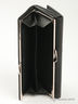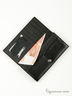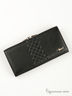 Кошелек закрывается на кнопку.Имеет три отделения,отделение для мелочи с рамочным замком,карман на молнии и отделения для визиток и каоточек. 18х3х10
