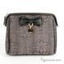 Элегантная косметичка из текстиля со вставками из кожи. Стенки сумки мягкие, Застегивается на молнию. Декорирована брелоком и бантом.