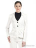 Классический костюм из приятного на ощупь материала. Состоит из приталенного жакета, с отложным воротником и лацканами, застегивается на пуговицы, спереди 2 прорезных кармана на клапане, пояс-резинка. Юбка-карандаш, сбоку застегивается на молнию.
