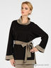Детали: туника с воротом-хомутом, длинный рукав с пристроченным отворотом, в шлевки продет пояс, один карман. Юбка: застежка на молнию на боку.