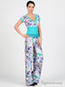 Детали: топ с глубоким декольте, короткий рукав-реглан. Брюки на ажурной резинке