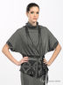 Топ свободного покроя. Воротник стойка. Широкие короткие цельнокроеные рукава. Спереди небольшой разрез.
