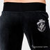 Мягкий домашний костюм из черного велюра декорирован оригинальными деталями. Отделка карманов и рукавов, логотип -нашивка на куртке и брюках выполнены из нити серебристого цвета. Капюшон украшен велюровым шнурком черного цвета с наконечником-колокольчиком.