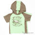 Футболка прямого силуэта с капюшоном и коротким рукавом. Полочка декорирована аппликацией. Контрастные вставки.