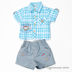 Детали: стильные шорты с поясом резинкой, два прорезных кармашка, один накладной кармашек, стильная вышивка по хлопку классическая футболка и рубашка с отложным воротником на небольшой стойке, короткие рукава, застежка на пуговицах