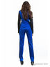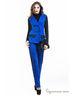 Костюм двойка: пиджак и брюки. Выполнен в цвете электрик с черными рукавами и лампасами. Отличный вариант для создания модного образа.