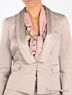 Элегантный костюм, состоящий из брюк и жакета, подчеркнет Ваш стиль. Жакет с отложным воротником с лацканами. Лацканы со вставками натурального шелка в тон. Застегивается на две кнопки. Брюки классического кроя. Два передних втачных кармана. Отрезной пояс со шлевками. Застежка на молнию и кнопку.