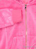 Толстовка прямого силуэта с капюшоном. Застежка на молнию, длинные рукава. Два передних кармана. Рукава и низ изделия посажены на трикотажные резинки. Изделие украшено стразами.