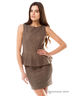 Прекрасный костюм, состоящий из платья и приталенной безрукавки с баской. Элементы этого комплекта прекрасно сочетаются как совсестно, так и с другими элементами гардероба. Ткань этой модели украшена кружевом.