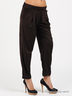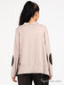 Свободный блузон с рукавами прямого покроя, на рукавах декоративные накладки из искусственной замши. Брюки "бананы" из искусственной замши, с мягкими складками на поясе, с карманами.