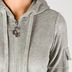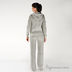 Мягкий домашний костюм из велюра брусничного цвета, Брюки с поясом-резинкой, Отверстия для шнурка на брюках и капюшоне отделаны металлическими вставками, велюровый шнурок украшен металлическими колокольчиками, Молния серебристого оттенка декорирована слайдером из металла в виде короны и имиджевых букв NC, Спина куртки в нижней части расшита паетками, На одном рукаве имеется неглубокий кармашек, который украшен круглой металлической вставкой,Все металлические детали декора инкрустированы стразами,