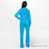 Яркий и стильный домашний костюм из мягкого велюра отлично подойдет и для прогулки за городом, для пикника или активного отдыха. Куртка с капюшоном и на молнии декорирована эполетами и логотипом из разноцветных металлических клепок. Молния украшена слайдером с атласной ленточкой и стразом. Капюшон на хлопковой подкладке. Манжеты отделаны трикотажной резинкой. Широкий пояс брюк дополнен декоративной вставкой сзади. Брюки имеют два прорезных кармана для Вашего удобства.