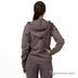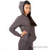 Домашний костюм из плотного трикотажа благородного серо-коричневого оттенка. Куртка без молнии с капюшоном и карманом-кенгуру декорирована металлическими клепками. Низ куртки и пояс брюк отделаны трикотажной резинкой и вышивкой Nic Club. Сзади брюк -два накладных кармана.