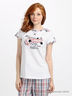 Трикотажная футболка с застёжкой на пуговках, на плечах кокетки, на горловине и на рукавах канты из бязи. Бязевые капри с карманами, на резинке, дополнительно затягиваются на шнурок, имитация застёжки на пуговках.