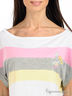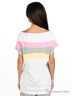 Детали: футболка - короткий цельнокроеный рукав; широкий круглый вырез; декорирована вставками из разноцветного материала; шорты - отрезной пояс со шлевками сзади на резинке; застегиваются на молнию и две пуговицы