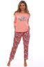 Костюм состоит из футболки с рукавом три четверти и брюк. Брюки на широкой удобной резинке. Комплект свободного кроя, очень удобный и уютный, не стесняет движений. Дополнен ярким оригинальным принтом.