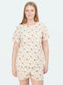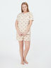 Очаровательный комплект для дома и отдыха. Футболка прямого силуэта, округлым вырезом горловины, коротким рукавом и нагрудным карманом. Шорты свободного силуэта с мягкой резинкой по линии талии. Принт «сердечки» подарит романтичное настроение, а натуральный состав позаботится о вашем комфорте.