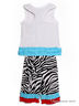 Чудесный костюм состоит из двух предметов: майка и капри. Майка на широких бретелях с округлым вырезом. Спереди изделие украшено декоративными элементами. Капри на эластичном поясе для более комфортной посадки. Весь комплект выполнен в яркой, контрастной расцветке. Отличный вариант для Вашего малыша.