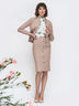 Классический строгий костюм-двойка из плотной костюмной ткани. Жакет с воротником-стойкой застегивается на пуговицы по полочке. Юбка-карандаш с вместительными накладными карманами, декорирована пуговицами по всей длине. Застегивается на потайную молнию сбоку. Сзади разрез.